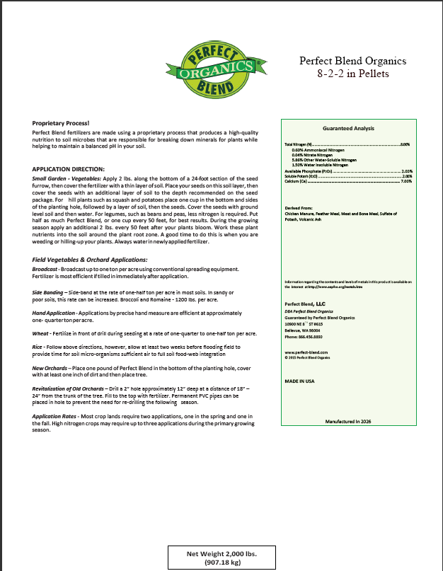 Washington Product Registration 2026 WSDA Organic Certificate 2026 WSDA Commercial Certificate Organic Liquid PBO 2-0-0 Label PBO 3-2-2 Label PBO 6-0-0 Label PBO 6-0-0+Soy Label PBO 8-0-0 Soy Label Powder Form PBO 16-0-0 Label Granular PBO 2-2-1 Label PBO 2-8-1 Label PBO 4-4-2 Label PBO 4-4-4 Label PBO 4-4-4 SGN 100 Label PBO 4-4-4 SGN 150 Label PBO 6-3-1 Label PBO 6-3-3 Label PBO 7-2-2 Label PBO 8-2-2 Label Pellets PBO 8-6-1 Label PBO 12-3-0 Label PBO 13-0-0 Label PBO 13-0-0 (80-20) Label PBO 8-2-2 Label Conventional Granular PBO 8-4-2 Label PBO 8-5-5 Label PBO 16-3-7 Label